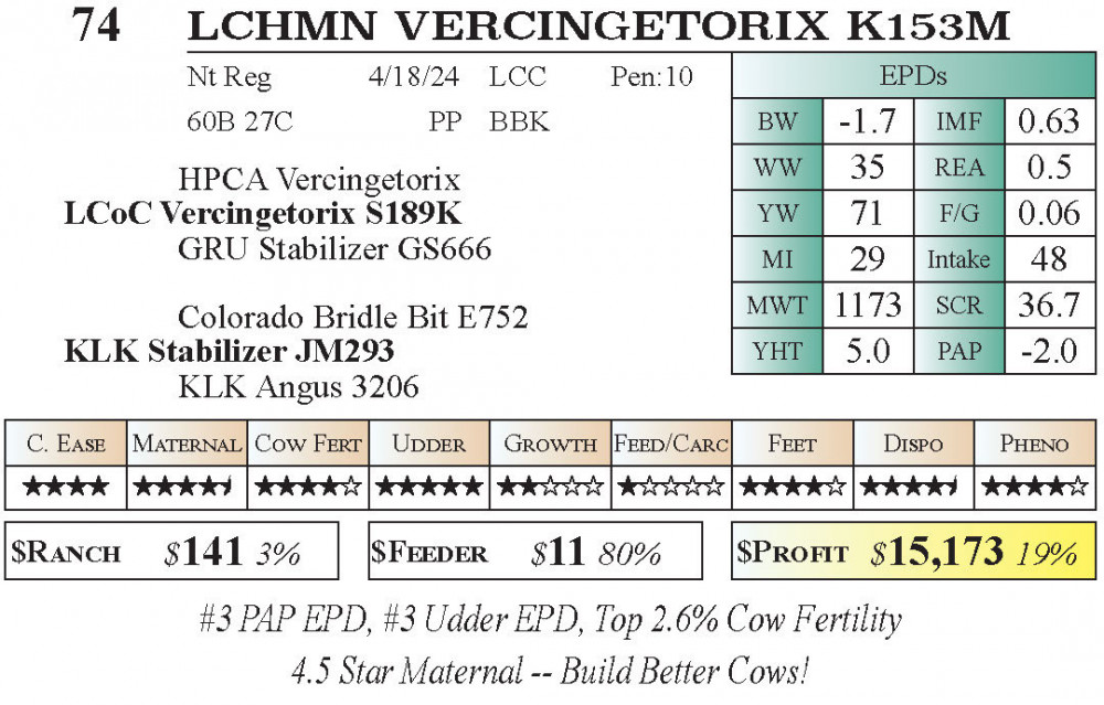 LCHMN VERCINGETORIX K153M (#74) 12.18.25 Leachman Texas Fall $Profit Sale 10:00 AM CT Bull - Stabilizer
