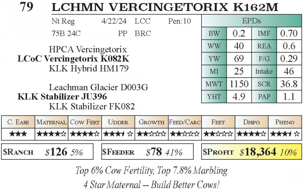 LCHMN VERCINGETORIX K162M (#79) 12.18.25 Leachman Texas Fall $Profit Sale 10:00 AM CT Bull - Stabilizer