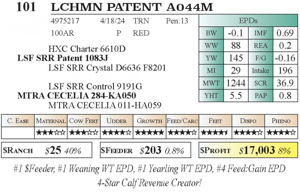 LCHMN PATENT A044M (#101) 12.18.25 Leachman Texas Fall $Profit Sale 10:00 AM CT Bull - Red Angus