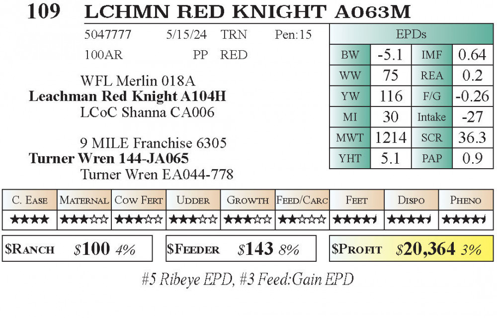 LCHMN RED KNIGHT A063M (#109) 12.18.25 Leachman Texas Fall $Profit Sale 10:00 AM CT Bull - Red Angus