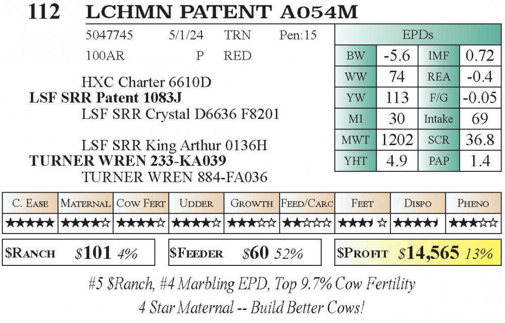 LCHMN PATENT A054M (#112) 12.18.25 Leachman Texas Fall $Profit Sale 10:00 AM CT Bull - Red Angus
