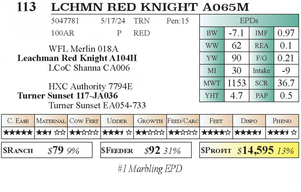 LCHMN RED KNIGHT A065M (#113) 12.18.25 Leachman Texas Fall $Profit Sale 10:00 AM CT Bull - Red Angus