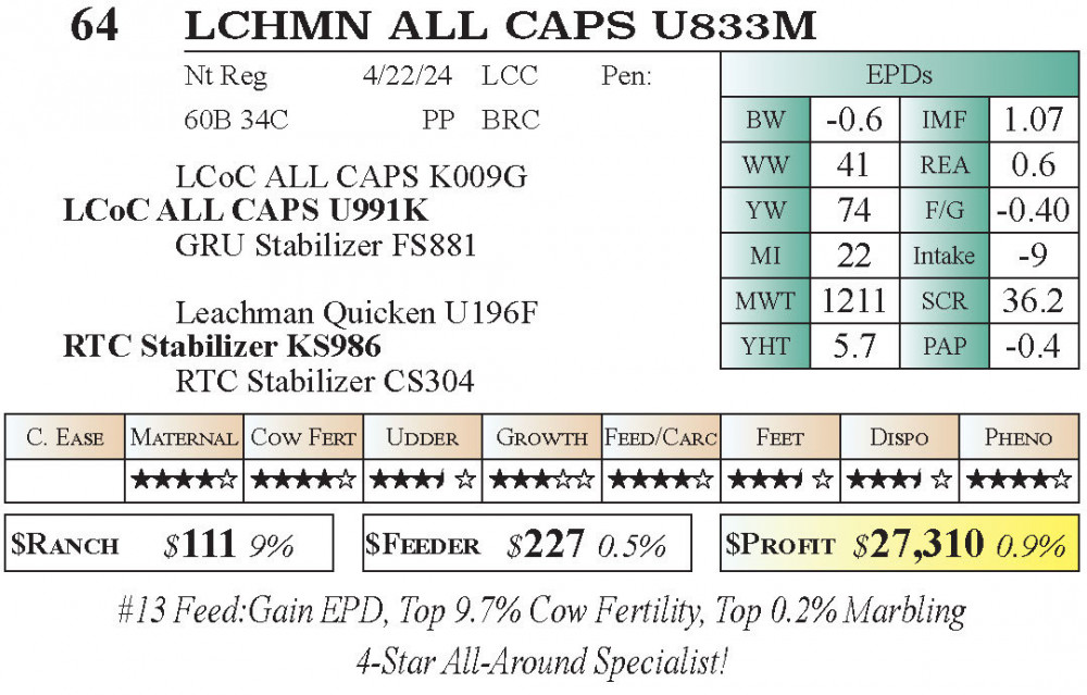 LCHMN ALL CAPS U833M (#64) 1.9.2026 Leachman Early Bird PRIVATE TREATY offering (AVAILABLE NOW!!!) PT Bulls - Stabilizer