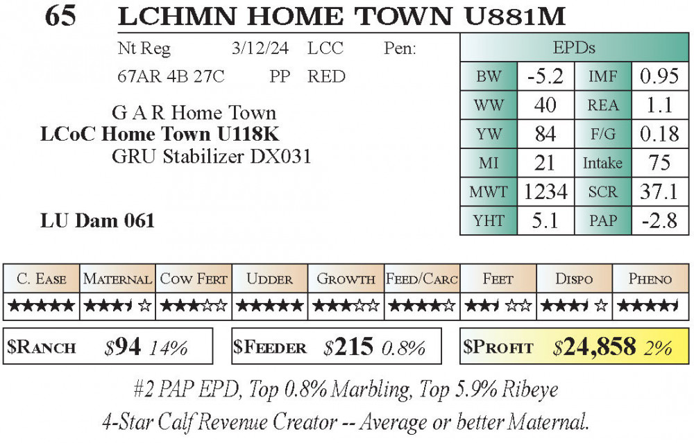 LCHMN Home Town U881M (#65) 1.9.2026 Leachman Early Bird PRIVATE TREATY offering (AVAILABLE NOW!!!) PT Bulls - Stabilizer