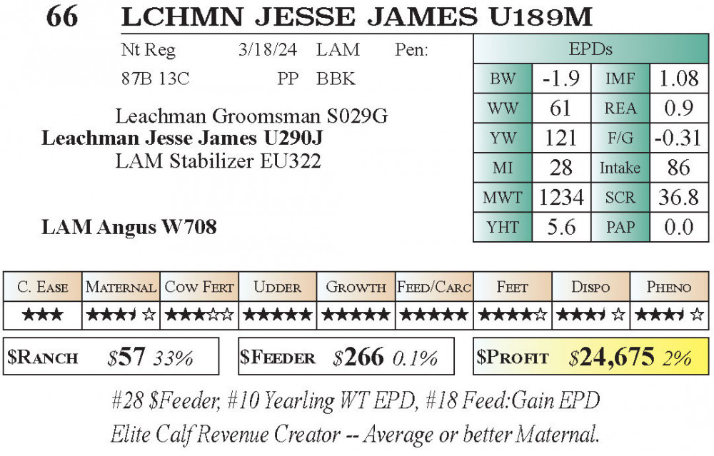 LCHMN Jesse James U189M (#66) 1.9.2026 Leachman Early Bird PRIVATE TREATY offering (AVAILABLE NOW!!!) PT Bulls - Stabilizer