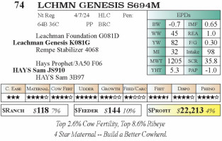 LCHMN Genesis S694M (#74) 1.9.2026 Leachman Early Bird PRIVATE TREATY offering (AVAILABLE NOW!!!) PT Bulls - Stabilizer