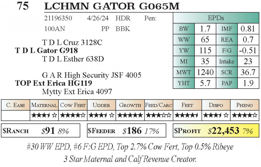 LCHMN Gator G065M (#75) 1.9.2026 Leachman Early Bird PRIVATE TREATY offering (AVAILABLE NOW!!!) PT Bulls - Stabilizer
