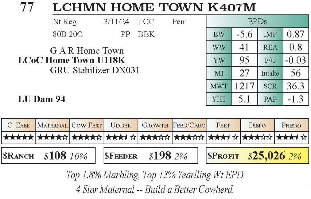 LCHMN Home Town K407M (#77) 1.9.2026 Leachman Early Bird PRIVATE TREATY offering (AVAILABLE NOW!!!) PT Bulls - Stabilizer