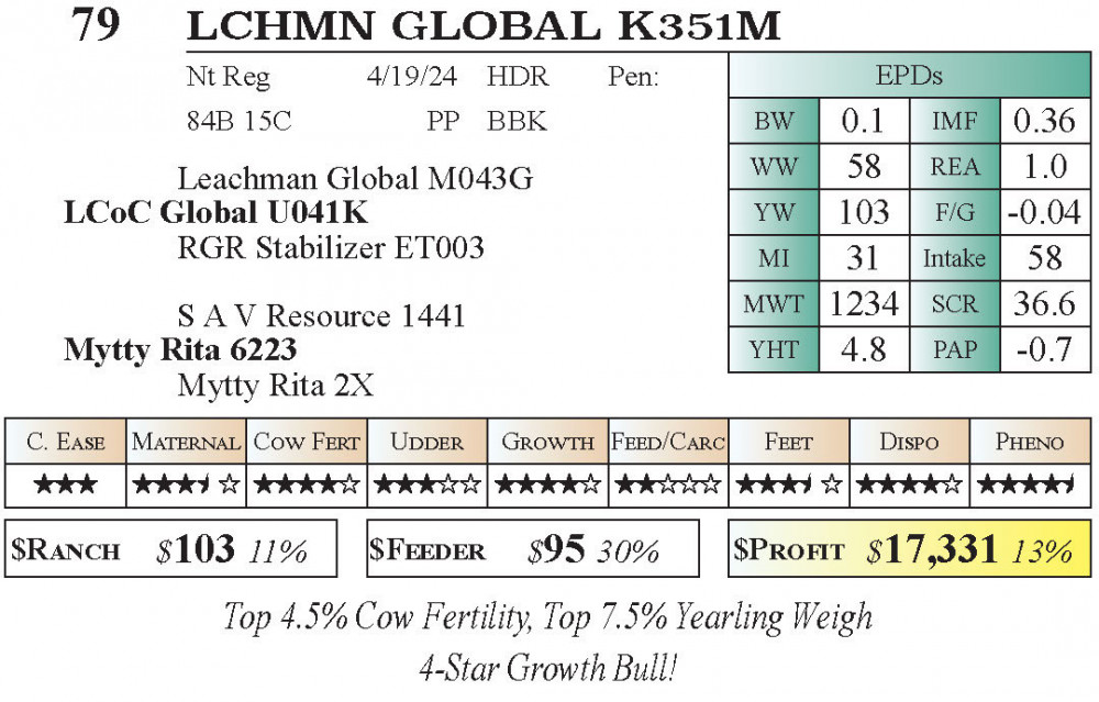LCHMN Global K351M (#79) 1.9.2026 Leachman Early Bird PRIVATE TREATY offering (AVAILABLE NOW!!!) PT Bulls - Stabilizer