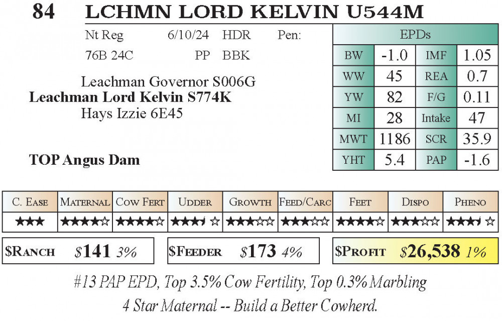LCHMN Lord Kelvin U544M (#84) 1.9.2026 Leachman Early Bird PRIVATE TREATY offering (AVAILABLE NOW!!!) PT Bulls - Stabilizer
