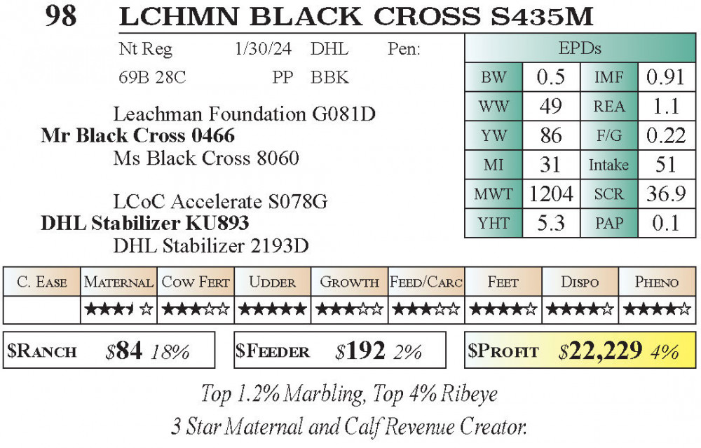 LCHMN Black Cross S435M (#98) 1.9.2026 Leachman Early Bird PRIVATE TREATY offering (AVAILABLE NOW!!!) PT Bulls - Stabilizer