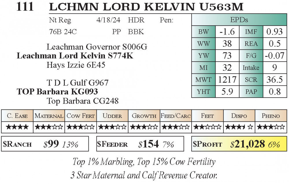 LCHMN Lord Kelvin U563M (#111) 1.9.2026 Leachman Early Bird PRIVATE TREATY offering (AVAILABLE NOW!!!) PT Bulls - Stabilizer