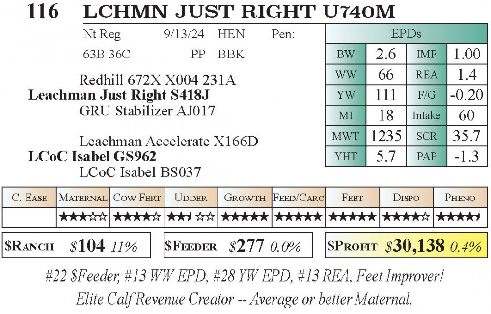 LCHMN Just Right U740M (#116) 1.9.2026 Leachman Early Bird PRIVATE TREATY offering (AVAILABLE NOW!!!) PT Bulls - Stabilizer
