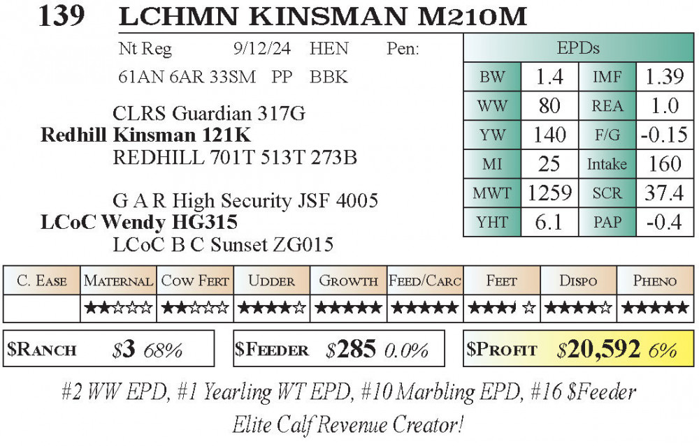 LCHMN Kinsman M210M (#139) 1.9.2026 Leachman Early Bird PRIVATE TREATY offering (AVAILABLE NOW!!!) PT Bulls - Stabilizer