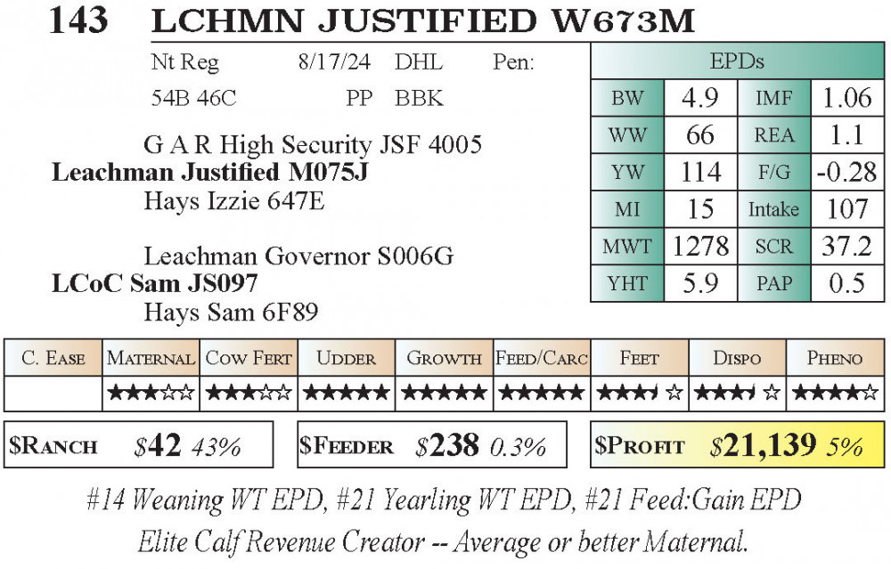 LCHMN Justified W673M (#143) 1.9.2026 Leachman Early Bird PRIVATE TREATY offering (AVAILABLE NOW!!!) PT Bulls - Stabilizer