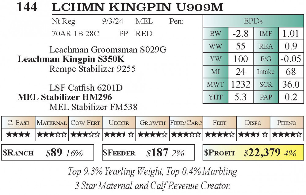 LCHMN Kingpin U909M (#144) 1.9.2026 Leachman Early Bird PRIVATE TREATY offering (AVAILABLE NOW!!!) PT Bulls - Stabilizer