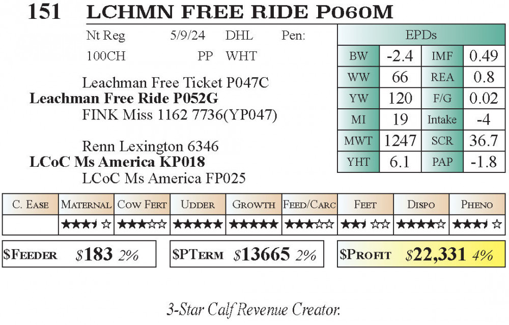 LCHMN Free Ride P060M (#151) 1.9.2026 Leachman Early Bird PRIVATE TREATY offering (AVAILABLE NOW!!!)