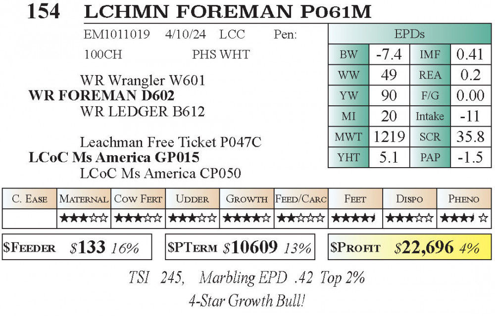 LCHMN Foreman P061M (#154) 1.9.2026 Leachman Early Bird PRIVATE TREATY offering (AVAILABLE NOW!!!)
