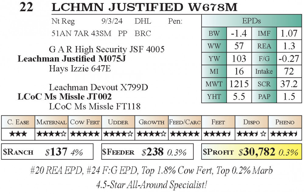 LCHMN Justified W678M (#22) 1.9.2026 Leachman Early Bird PRIVATE TREATY offering (AVAILABLE NOW!!!) PT Bulls - Stabilizer