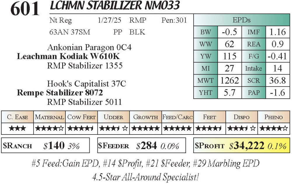 LCHMN Stabilizer NM033 (#601) 3.22.26 Leachman Cattle Spring Female Sale 11:30 AM MTN Stabilizer Female