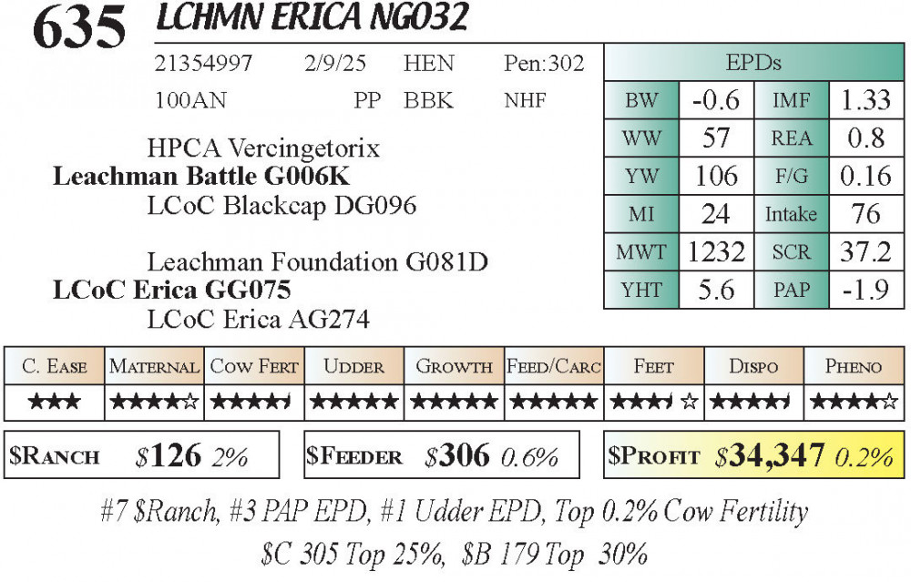 LCHMN Erica NG032 (#635) 3.22.26 Leachman Cattle Spring Female Sale 11:30 AM MTN Angus Female