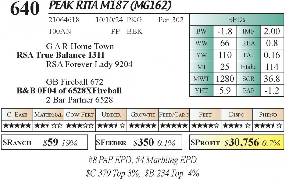 PEAK Rita M187 (MG162) (#640) 3.22.26 Leachman Cattle Spring Female Sale 11:30 AM MTN Angus Female