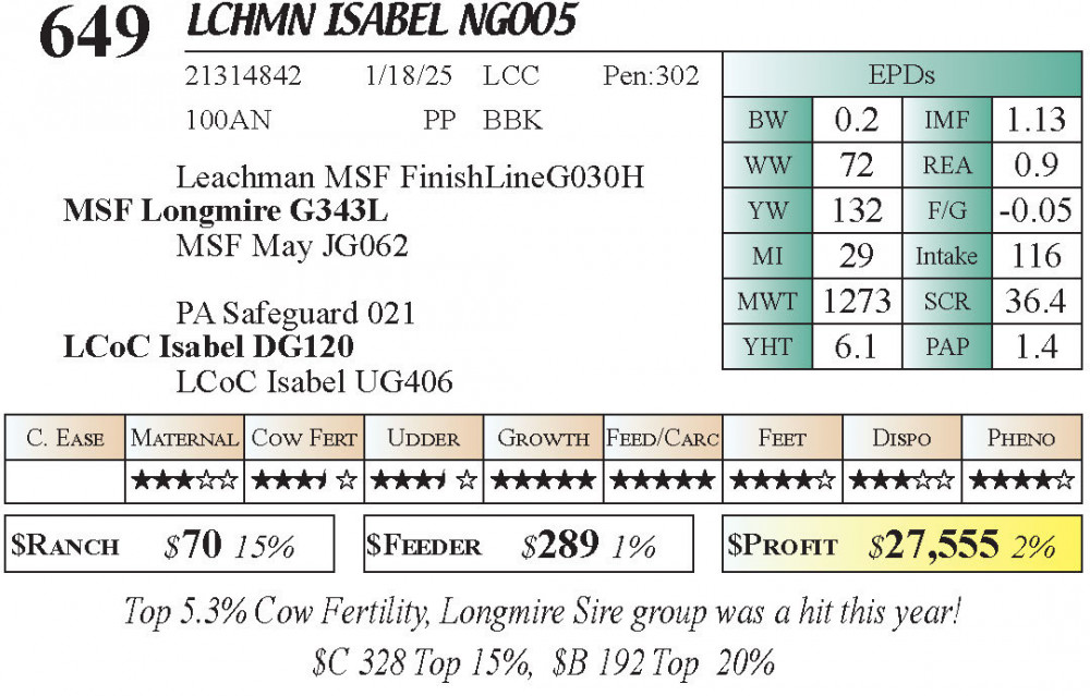 LCHMN Isabel NG005 (#649) 3.22.26 Leachman Cattle Spring Female Sale 11:30 AM MTN Angus Female