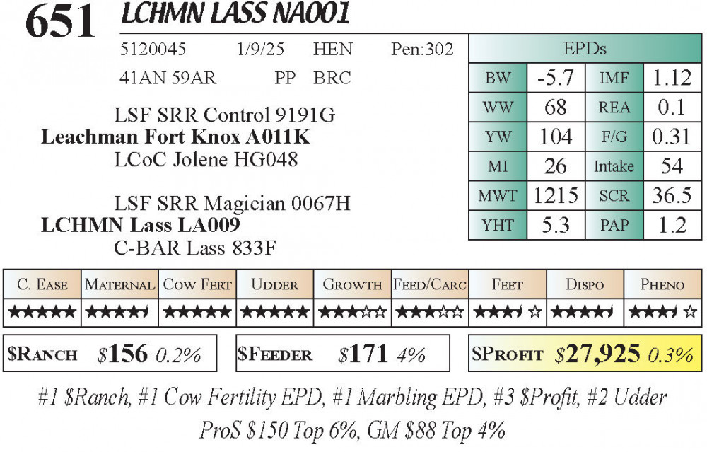 LCHMN Lass NA001 (#651) 3.22.26 Leachman Cattle Spring Female Sale 11:30 AM MTN Red Angus Female