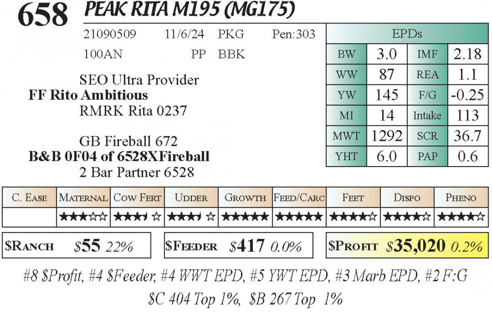 PEAK Rita M195 (MG175) (#658) 3.22.26 Leachman Cattle Spring Female Sale 11:30 AM MTN Angus Female