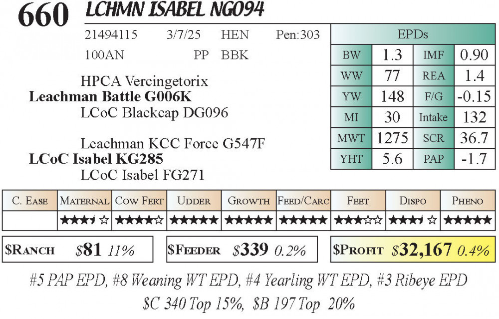 LCHMN Isabel NG094 (#660) 3.22.26 Leachman Cattle Spring Female Sale 11:30 AM MTN Angus Female