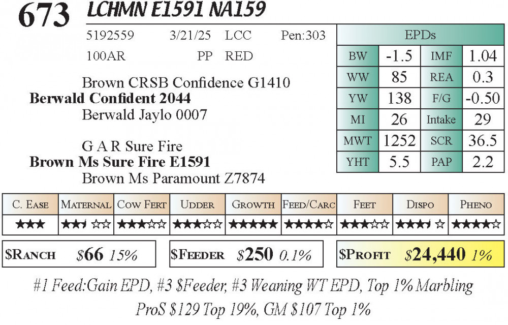 LCHMN E1591 NA159 (#673) 3.22.26 Leachman Cattle Spring Female Sale 11:30 AM MTN Red Angus Female