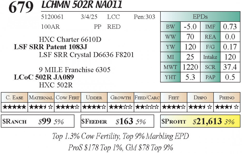 LCHMN 502R NA011 (#679) 3.22.26 Leachman Cattle Spring Female Sale 11:30 AM MTN Red Angus Female