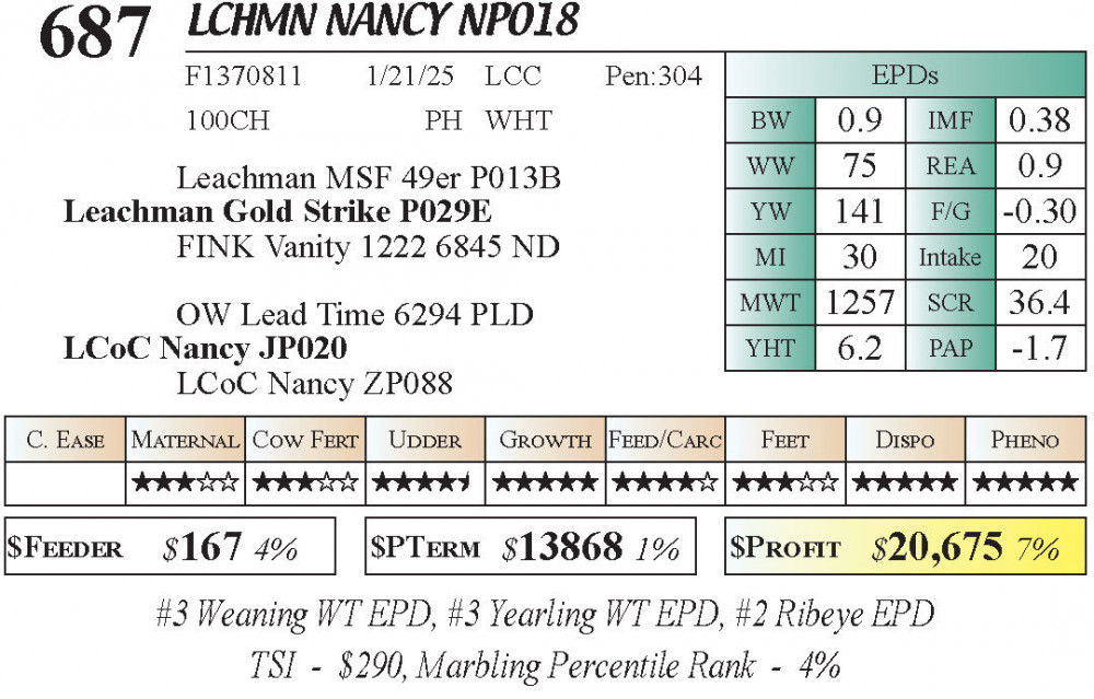 LCHMN Nancy NP018 (#687) 3.22.26 Leachman Cattle Spring Female Sale 11:30 AM MTN Charolais Female