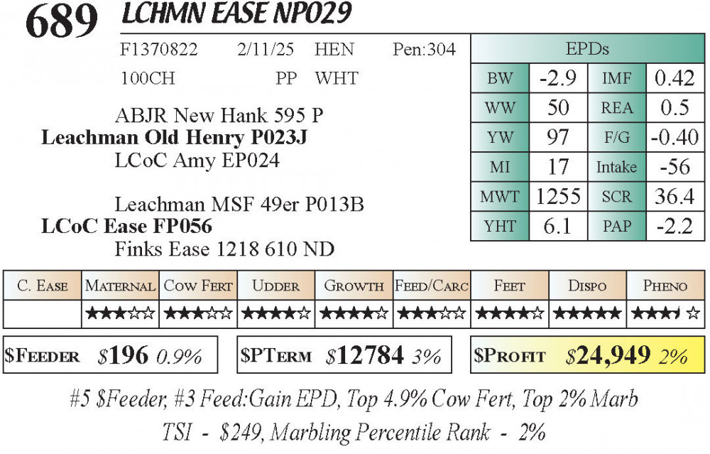 LCHMN Ease NP029 (#689) 3.22.26 Leachman Cattle Spring Female Sale 11:30 AM MTN Charolais Female