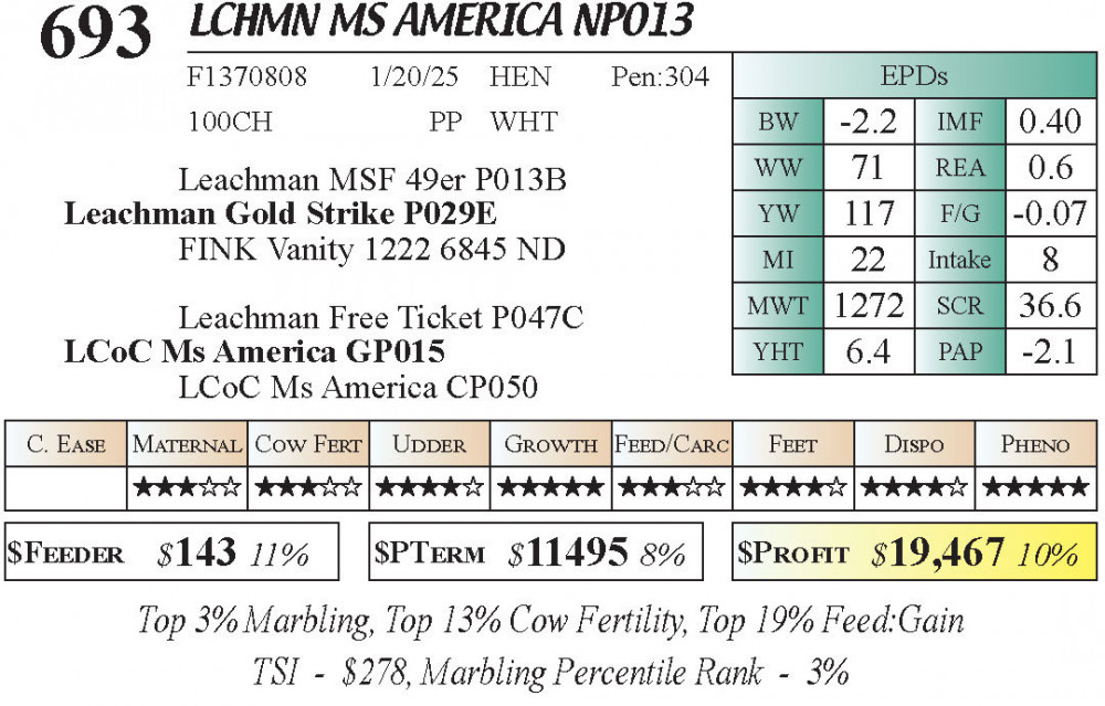 LCHMN Ms America NP013 (#693) 3.22.26 Leachman Cattle Spring Female Sale 11:30 AM MTN Charolais Female