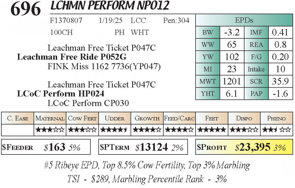 LCHMN Perform NP012 (#696) 3.22.26 Leachman Cattle Spring Female Sale 11:30 AM MTN Charolais Female