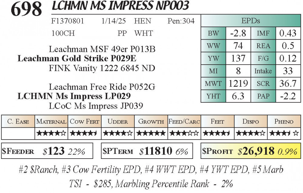 LCHMN Ms Impress NP003 (#698) 3.22.26 Leachman Cattle Spring Female Sale 11:30 AM MTN Charolais Female