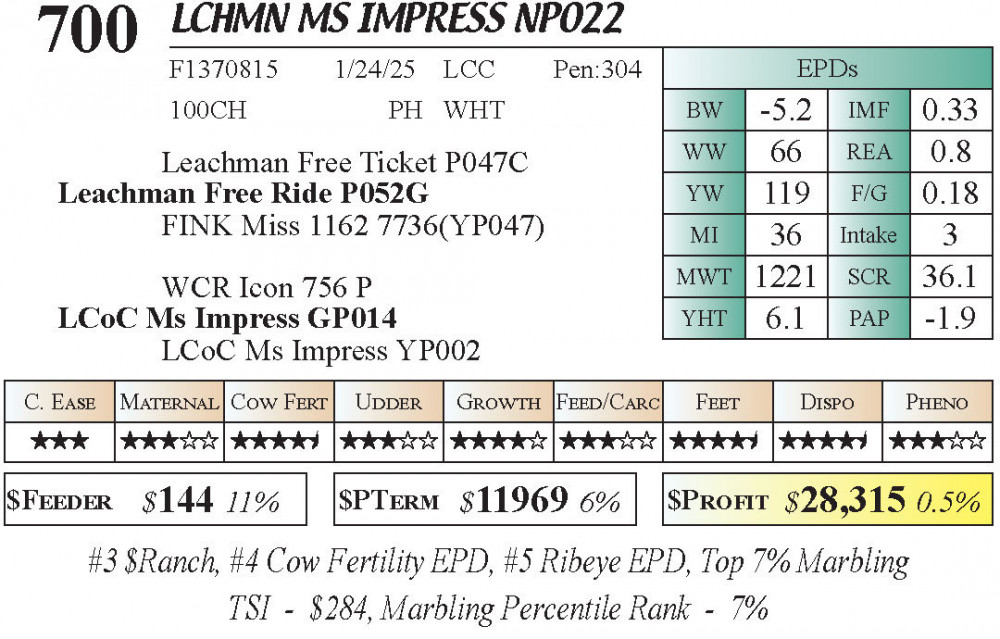 LCHMN Ms Impress NP022 (#700) 3.22.26 Leachman Cattle Spring Female Sale 11:30 AM MTN Charolais Female