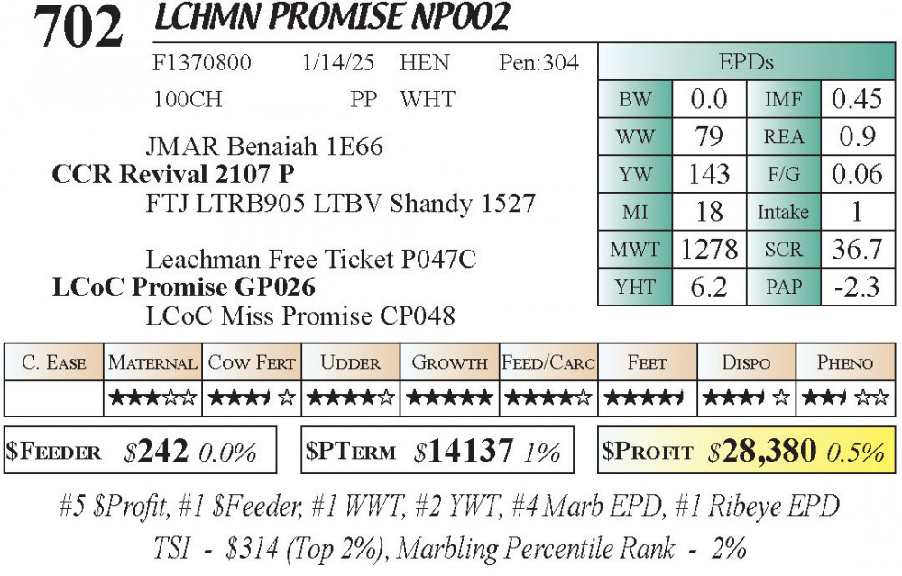 LCHMN Promise NP002 (#702) 3.22.26 Leachman Cattle Spring Female Sale 11:30 AM MTN Charolais Female