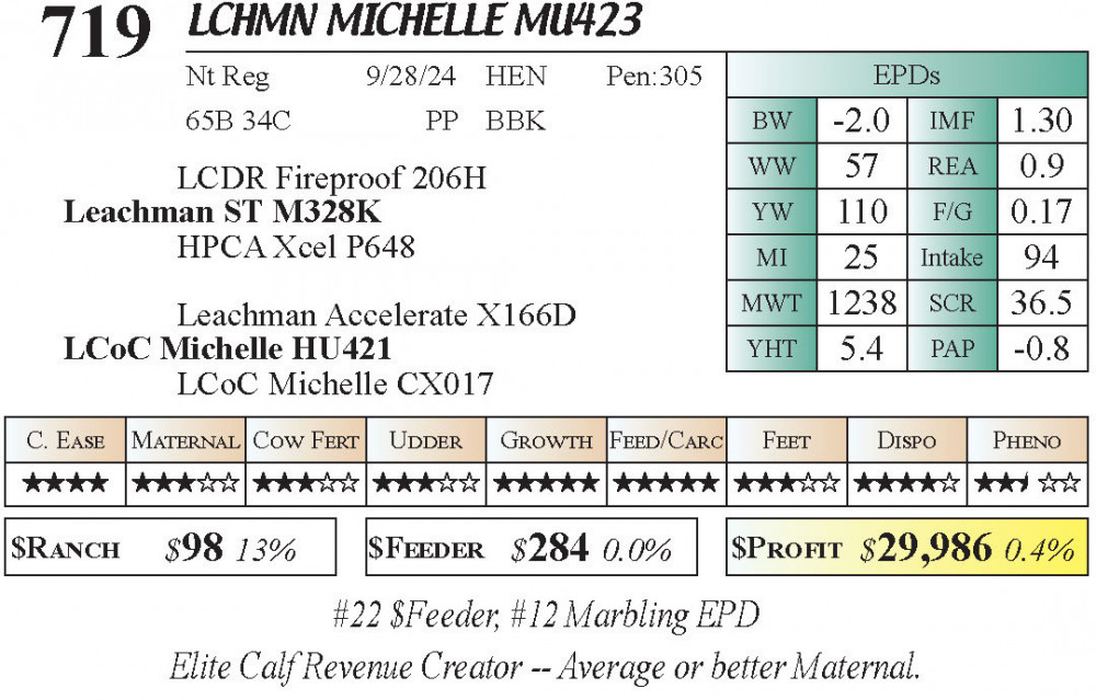 LCHMN Michelle MU423 (#719) 3.22.26 Leachman Cattle Spring Female Sale 11:30 AM MTN Stabilizer Female