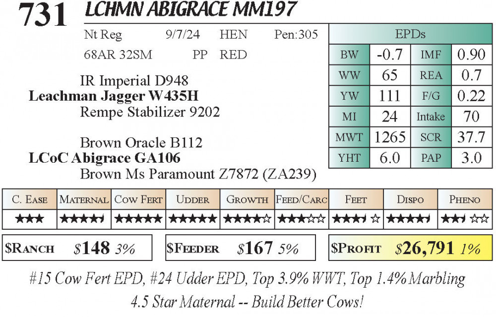 LCHMN Abigrace MM197 (#731) 3.22.26 Leachman Cattle Spring Female Sale 11:30 AM MTN Stabilizer Female