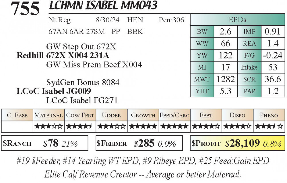 LCHMN Isabel MM043 (#755) 3.22.26 Leachman Cattle Spring Female Sale 11:30 AM MTN Stabilizer Female