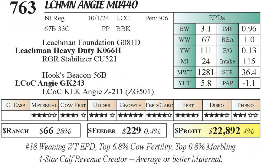 LCHMN Angie MU440 (#763) 3.22.26 Leachman Cattle Spring Female Sale 11:30 AM MTN Stabilizer Female