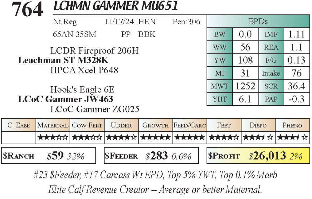 LCHMN Gammer MU651 (#764) 3.22.26 Leachman Cattle Spring Female Sale 11:30 AM MTN Stabilizer Female