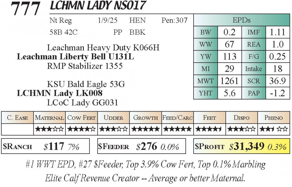 LCHMN Lady NS017 (#777) 3.22.26 Leachman Cattle Spring Female Sale 11:30 AM MTN Stabilizer Female