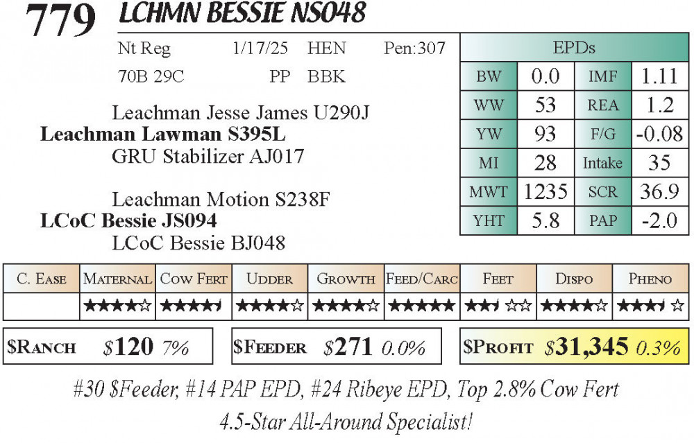 LCHMN Bessie NS048 (#779) 3.22.26 Leachman Cattle Spring Female Sale 11:30 AM MTN Stabilizer Female