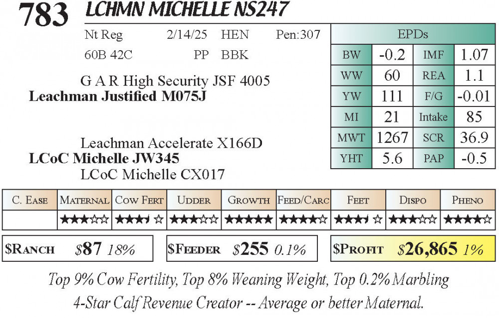 LCHMN Michelle NS247 (#783) 3.22.26 Leachman Cattle Spring Female Sale 11:30 AM MTN Stabilizer Female