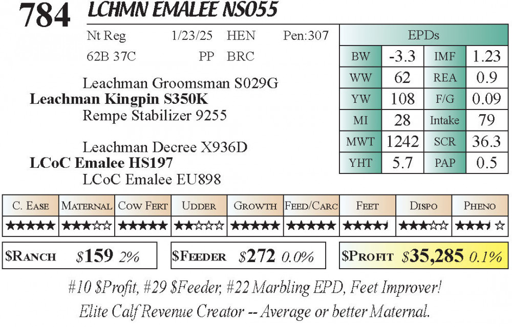 LCHMN Emalee NS055 (#784) 3.22.26 Leachman Cattle Spring Female Sale 11:30 AM MTN Stabilizer Female