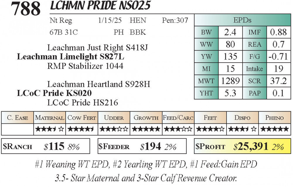 LCHMN Pride NS025 (#788) 3.22.26 Leachman Cattle Spring Female Sale 11:30 AM MTN Stabilizer Female