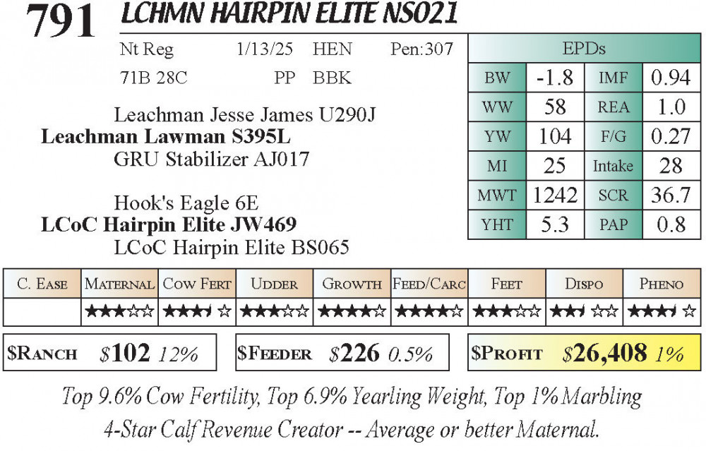 LCHMN Hairpin Elite NS021 (#791) 3.22.26 Leachman Cattle Spring Female Sale 11:30 AM MTN Stabilizer Female
